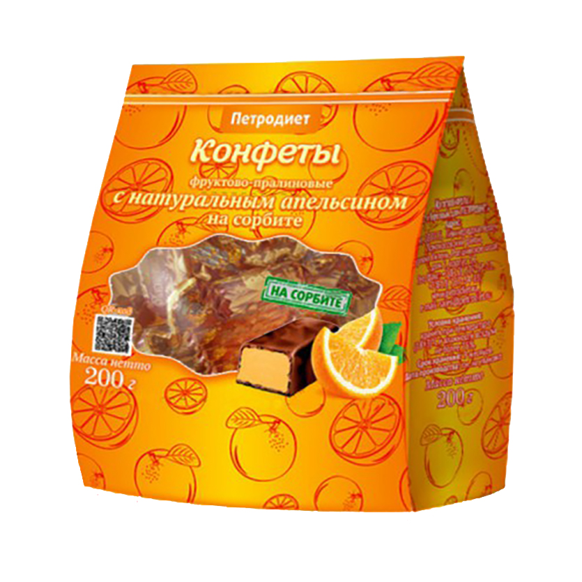 Конфеты фруктово-пралиновые Петродиет с натуральным апельсином 200г